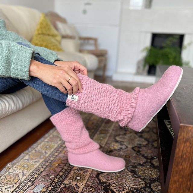 Materials: Natural wool uppers from New Zealand sheep. Mulesing-free. Natural rubber soles. The upper is made of hand-knitted sheep wool.