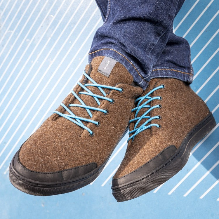Materials: Natural mulesing-free wool from the Roux du Valais sheep of the UNIL campus. Soft merino blend inner lining. Durable rubber sole & genuine top-grain Nubuck. Includes an inner sole with wool covering and 2 pairs of elastic laces.